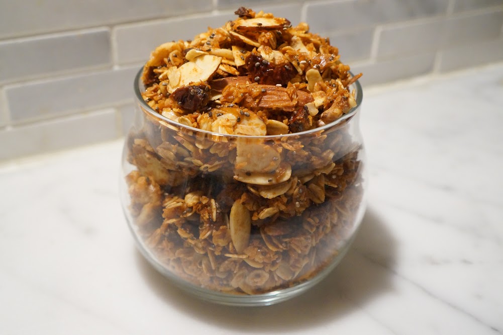 Bake the eggplant with olive oil, salt, and pepper at 350 degrees until soft and tender. Then, remove the fleshy inside from the skin of the eggplant with a fork. Add the flesh to a food processor with the tahini, garlic, lemon and seasoning and pulse. The texture should still have some integrity, you’re not looking for a compleatly smooth texture here. Serve and top with olive oil and optional pomagranate seeds!